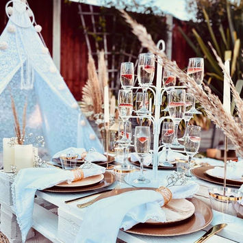 Boho Glam - A glam, darker twist on out luxe theme with black & gold accessories & a sprinkle of greenery